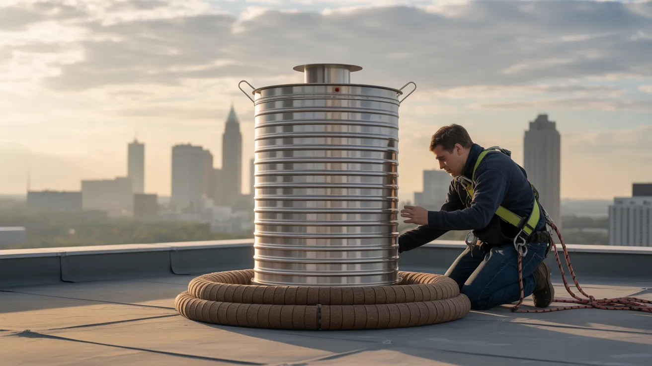 At the top, switch to stainless caps matching the chimney opening and crown, with protective screening that meets NFPA 211. Stainless steel withstands deterioration typical of Georgia's humid climate and acidic flue gases. Verify the cap's skirt sheds water away from the crown edge and fastens securely, beyond simple sealant application, to maintain structural reliability and prevent moisture entry.